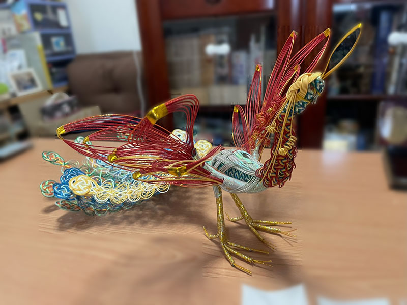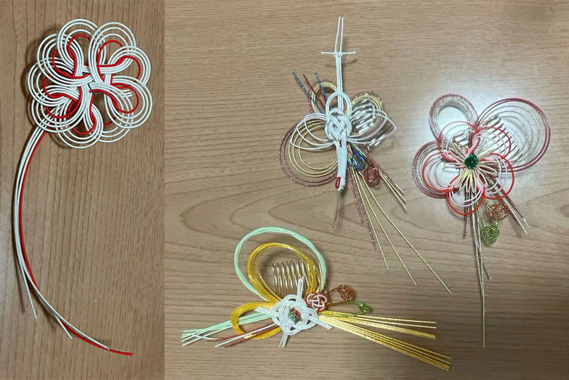 平井様は、置物や髪飾り・イヤリングなどのアクセサリー、結納品など様々な水引をすべて手作業で作られています。