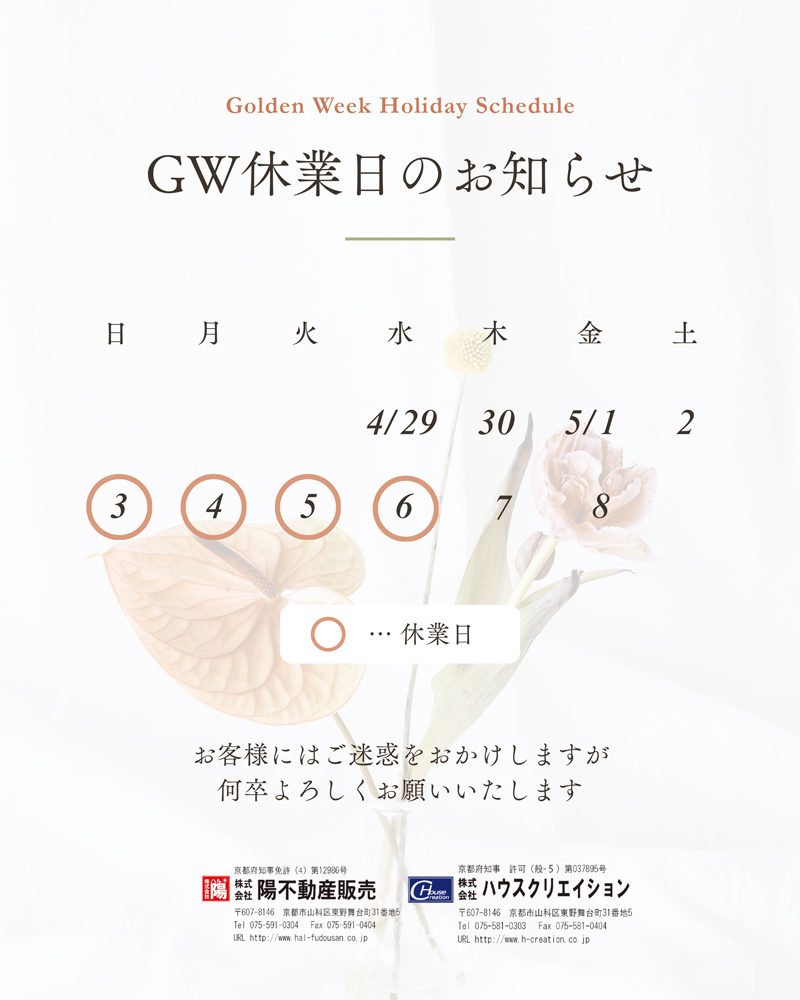 誠に勝手ながら、下記の期間をゴールデンウィーク休業とさせていただきます。🙇‍♀️