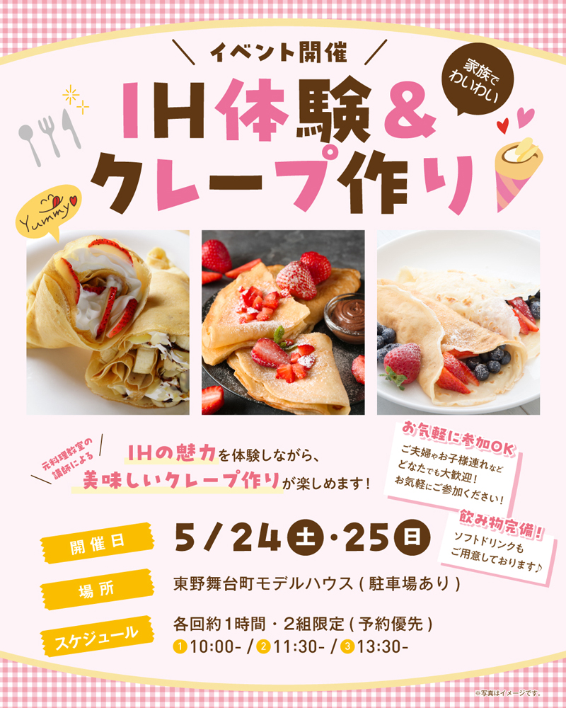 5月24日(土)・25日(日)😊IH体験&クレープ作りイベント開催🏡