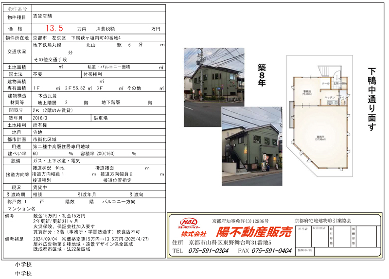 【賃貸店舗】左京区 下鴨萩ヶ垣内町