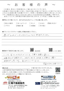 土地購入・新築注文住宅 いつも皆さんの対応がとても丁寧で非常に楽しくお家作りが出来ました。(山科区 O様邸) お施主様O様 竣工・取引日2024年10月 弊社とのご縁はどの様なことからでしょうか? 看板・旗 感想やご意見をお願いいたします いつも皆さまの対応がとても丁寧で非常に楽しくお家作りが出来ました。 これからも地域の活動を一緒に出来ればと思います。 ありがとうございます。 営業主任岡 律穂この度は弊社、パナソニックのテクノストラクチャーを使用した、新築注文住宅ベイシーにて建築をご用命いただきまして、ありがとうございました。 現場打合せは暑い中での打ち合わせでしたが、いつも私たちスタッフのことを気遣って下さりありがとうございました。 いつもお子様含めO様御家族より元気をいただいておりました。 とても素敵なおうちが完成し嬉しく思います。 また、年に2回弊社にてイベントを開催しておりますので、是非皆様で遊びにいらしてくださいね。 今後ともどうぞ末永いお付き合いをよろしくお願いいたします。