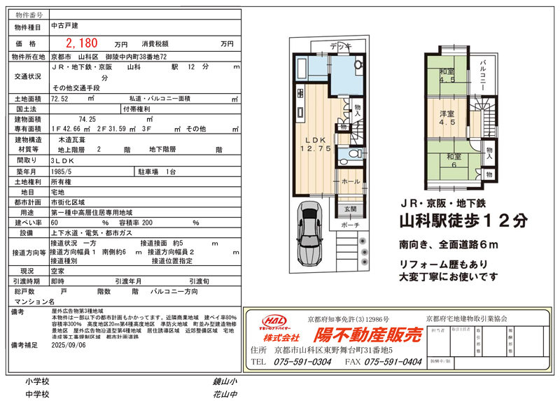 建物面積:1F:42.66㎡ / 2F:31.59㎡