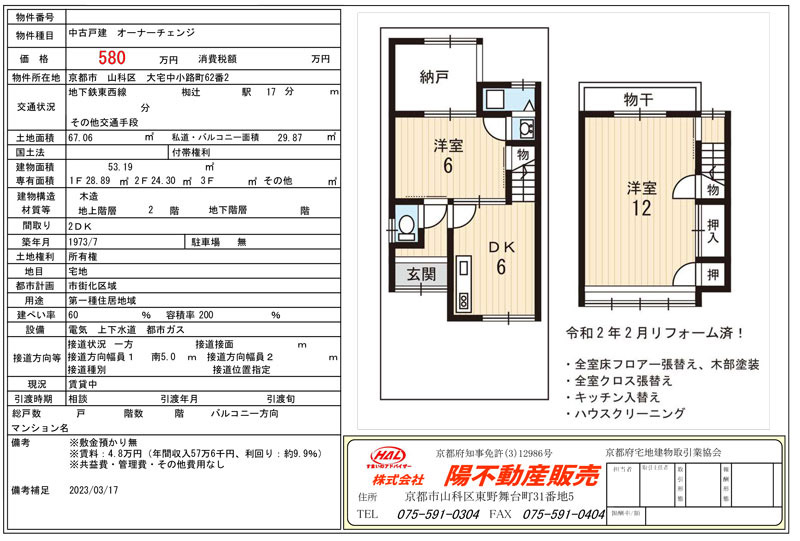 オーナーチェンジ物件。令和2年2月リフォーム済です!